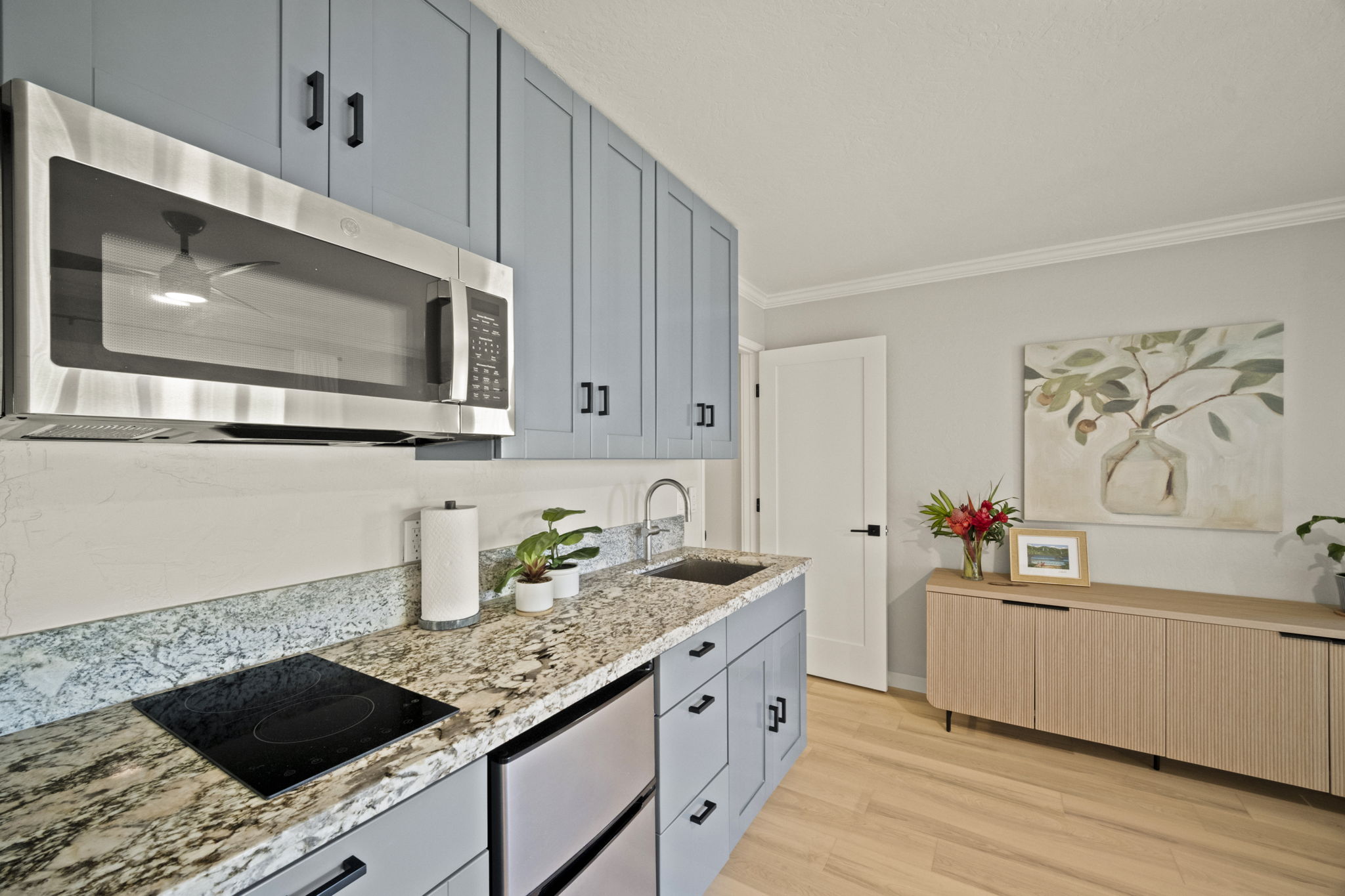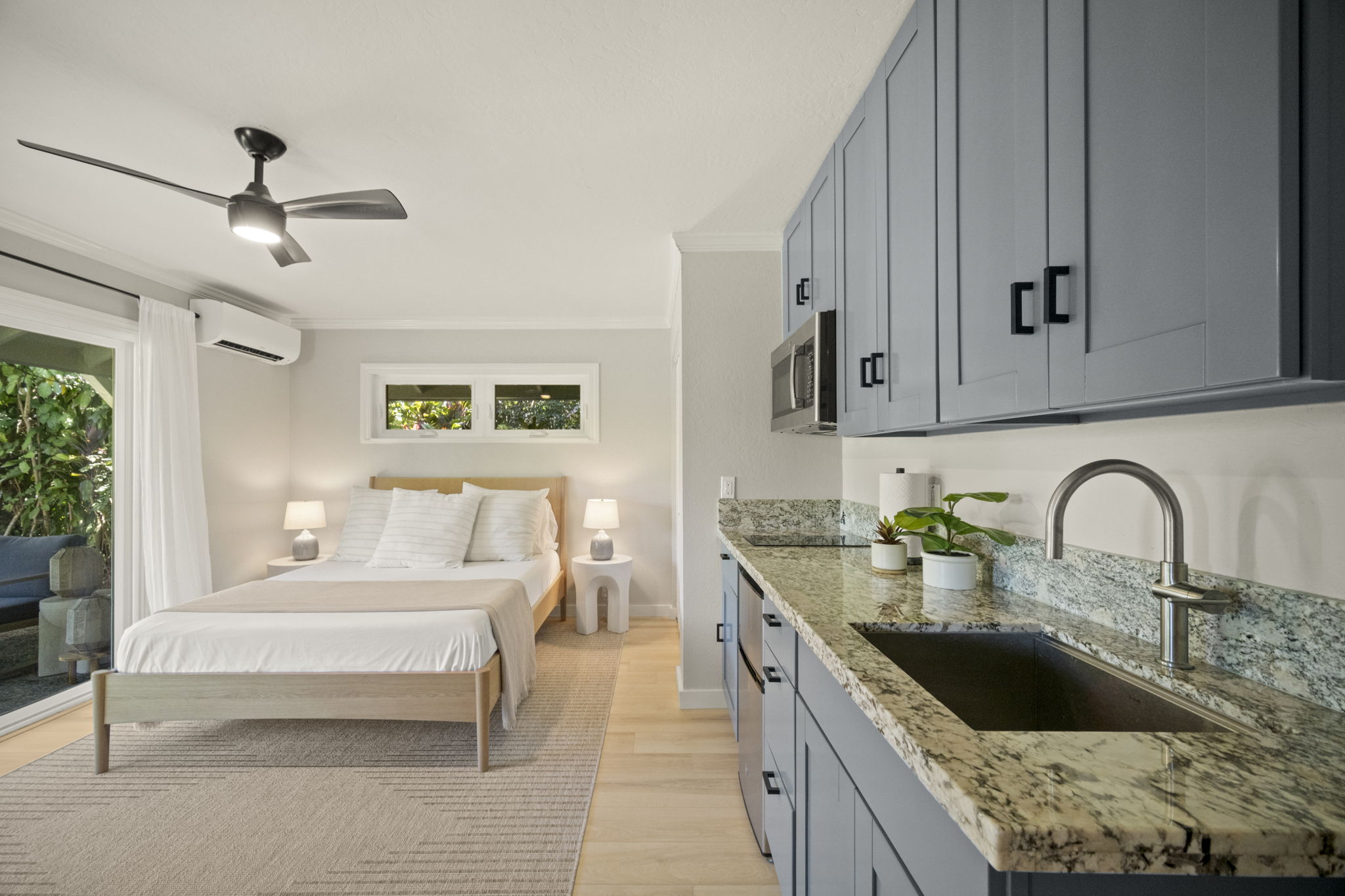 The fully equipped kitchen features new appliances, granite countertops, and generous space, making it easy to prepare island-inspired meals. Enjoy dining indoors or step out to the covered front lanai for al fresco meals surrounded by tropical greenery.