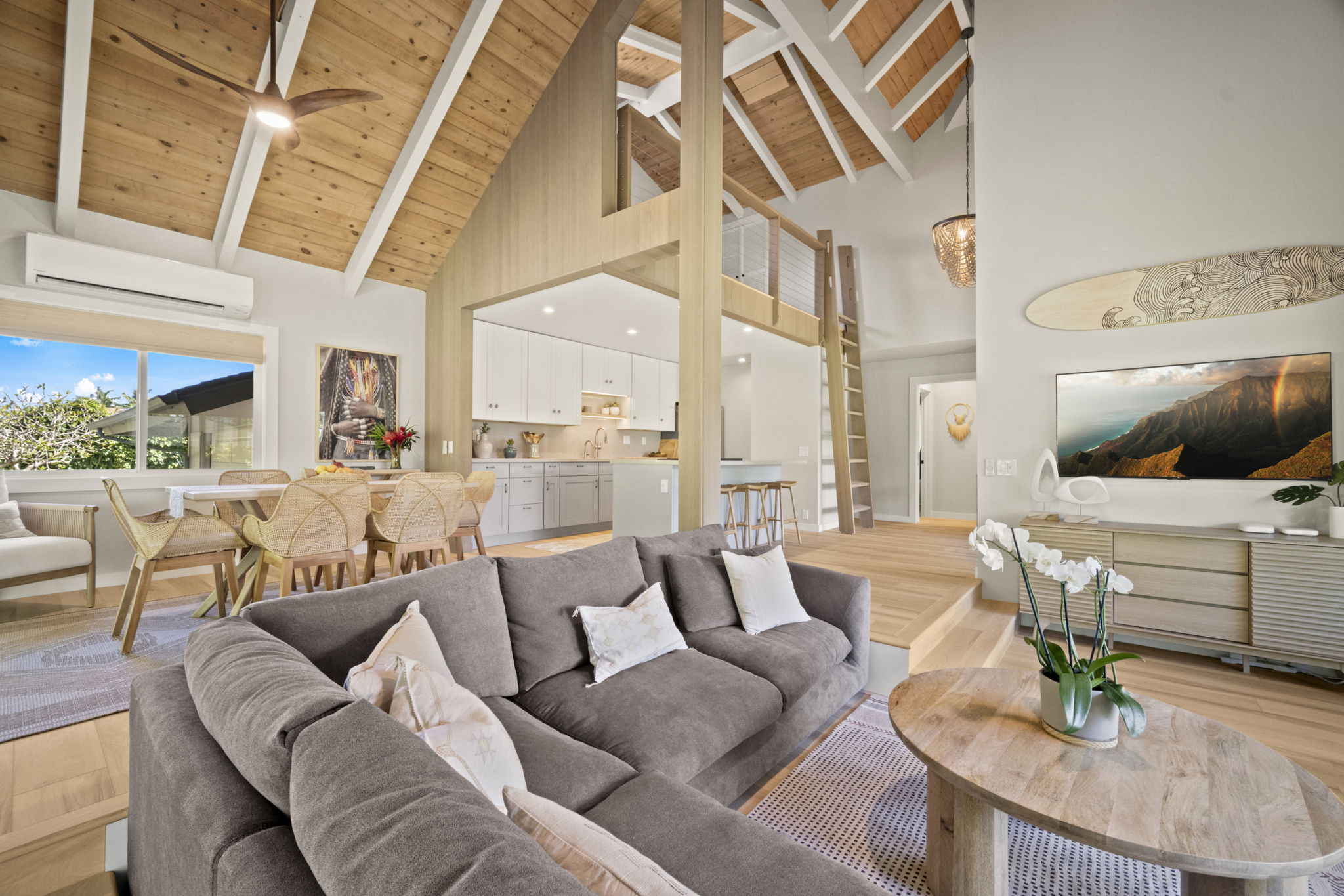 Nestled on Kaua‘i’s breathtaking North Shore, this stunning 3-bedroom + loft (loft sleeping area for teens and adults, ages 13+), 2 bathroom home offers an exceptional blend of luxurious comfort, style, and convenience. Perfect for families, couples, or friends, Kalani provides a peaceful escape just minutes from world-class golf courses, tennis courts, walking paths, the 1 Hotel, local shops, restaurants, and iconic beaches of Kauai.