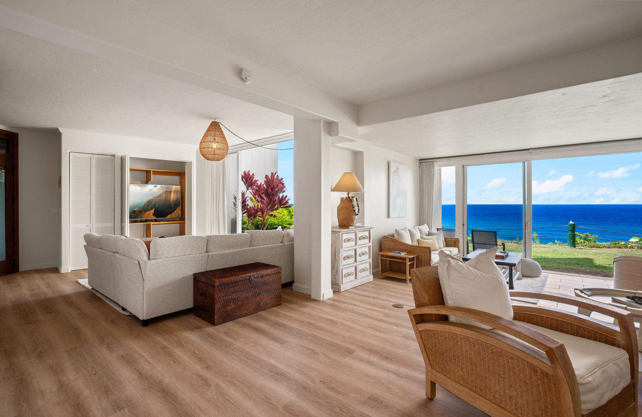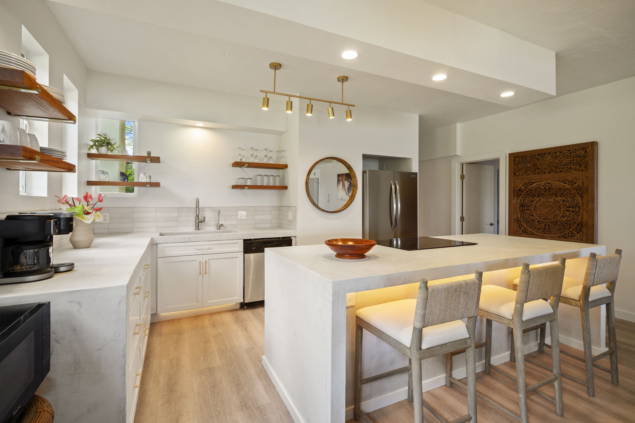 A rare jewel on Kauai’s North Shore. Welcome to Mahina Kai — a newly renovated, designer-styled luxury condo perched on the ocean bluffs of Princeville. This boutique retreat blends modern elegance with soulful artistry, offering an exclusive experience unlike anything else on the island.