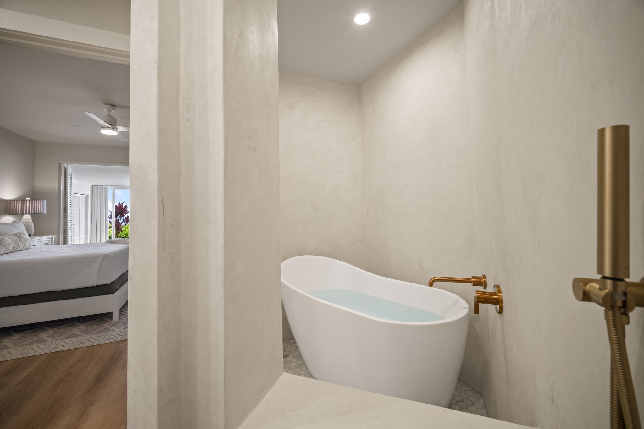 Step outside your ground-floor lanai to manicured lawns and sweeping ocean views. From the comfort of your designer sofa, watch whales breach in the winter months, rainbows arc across the horizon, and the sun rise over the Pacific. Just beyond your door, a private trail leads to Hideaways Beach — one of Kauai’s most treasured gems — and a short stroll takes you to the 1 Hotel for world-class dining and sunset cocktails.