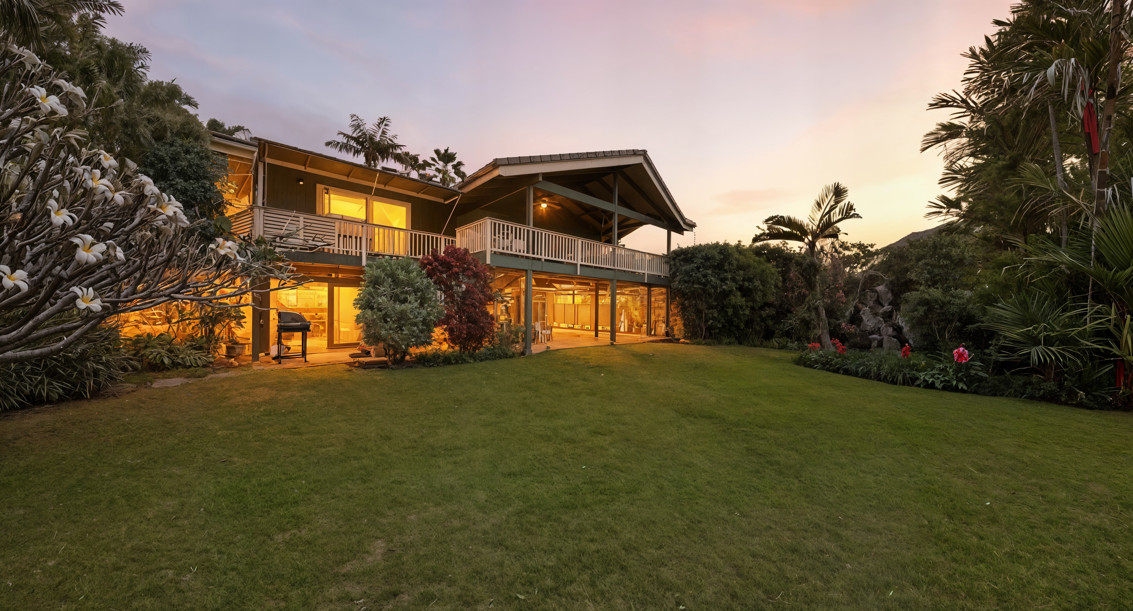 Hanalei Bay is just moments away, offering calm summer swimming and world-class winter surfing, along with unforgettable walks along the beach any time of day.