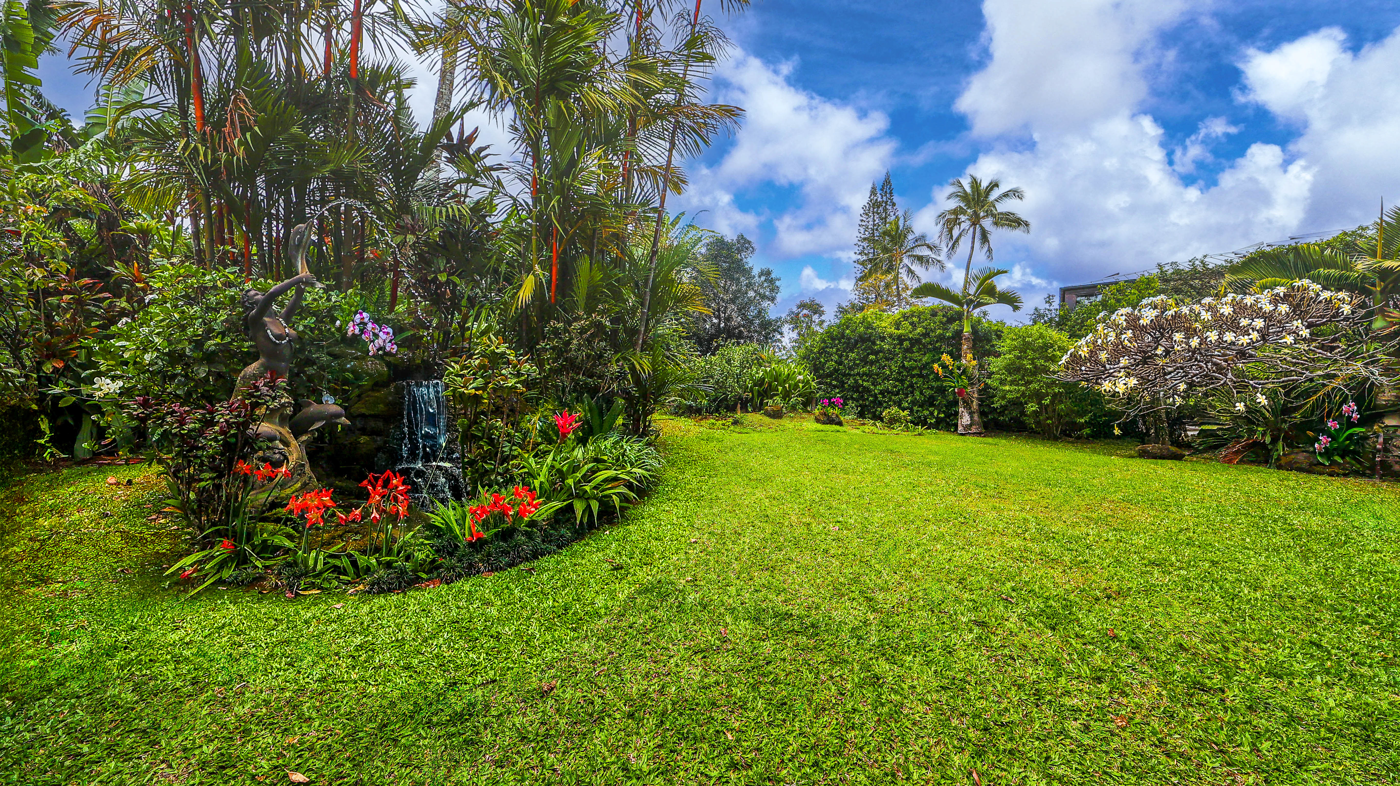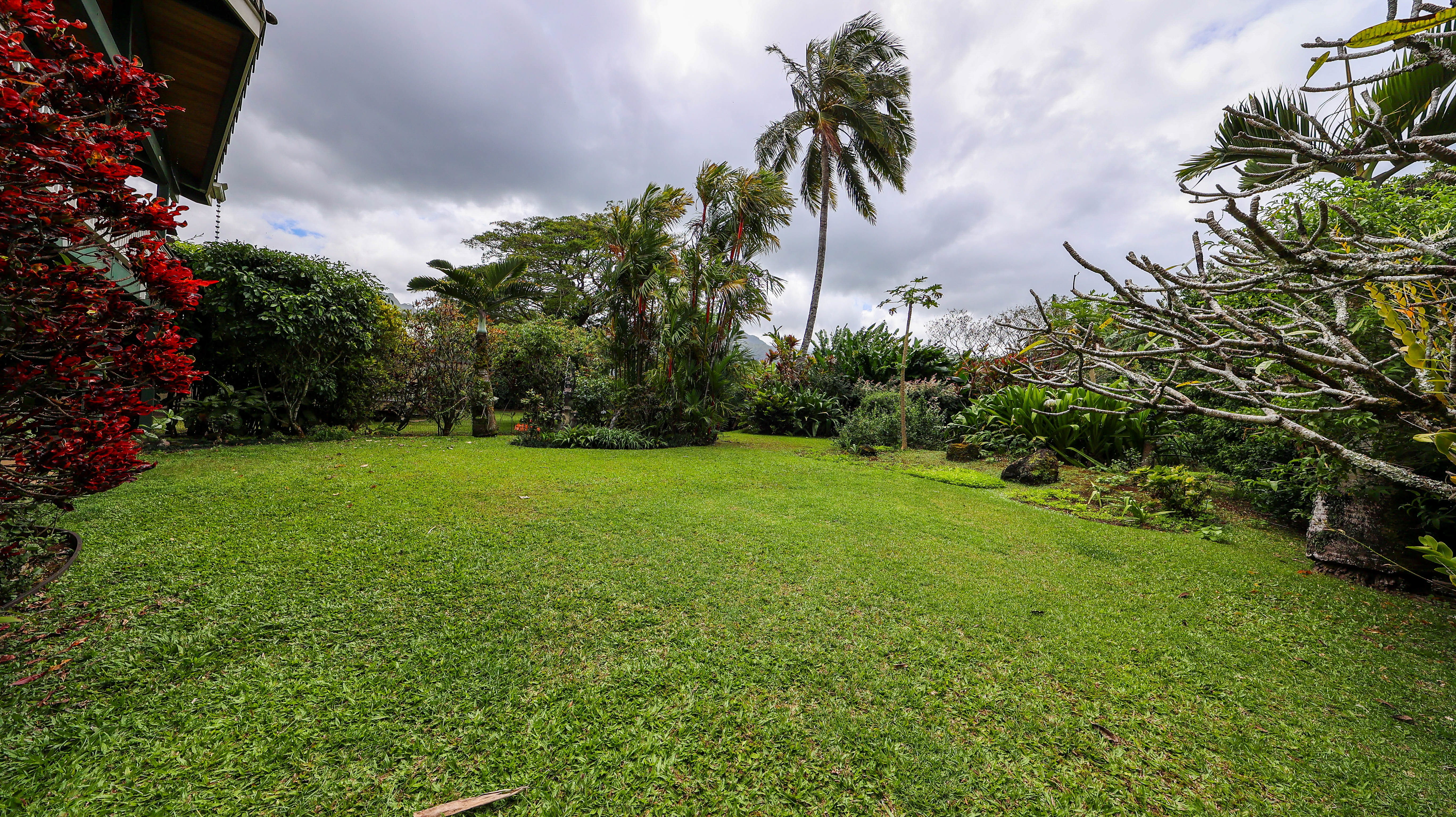 Lots of space with plumeria trees and fruit trees -