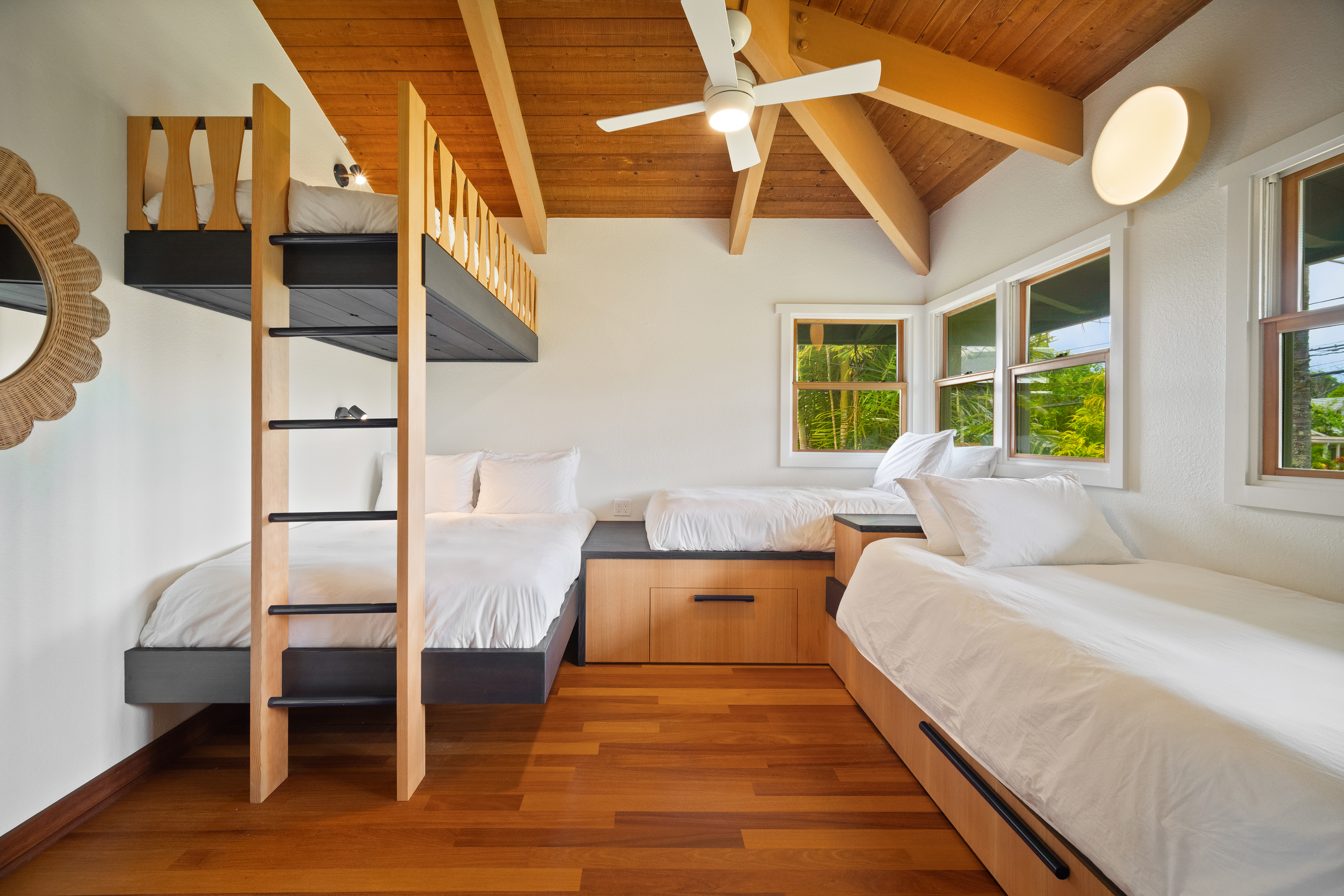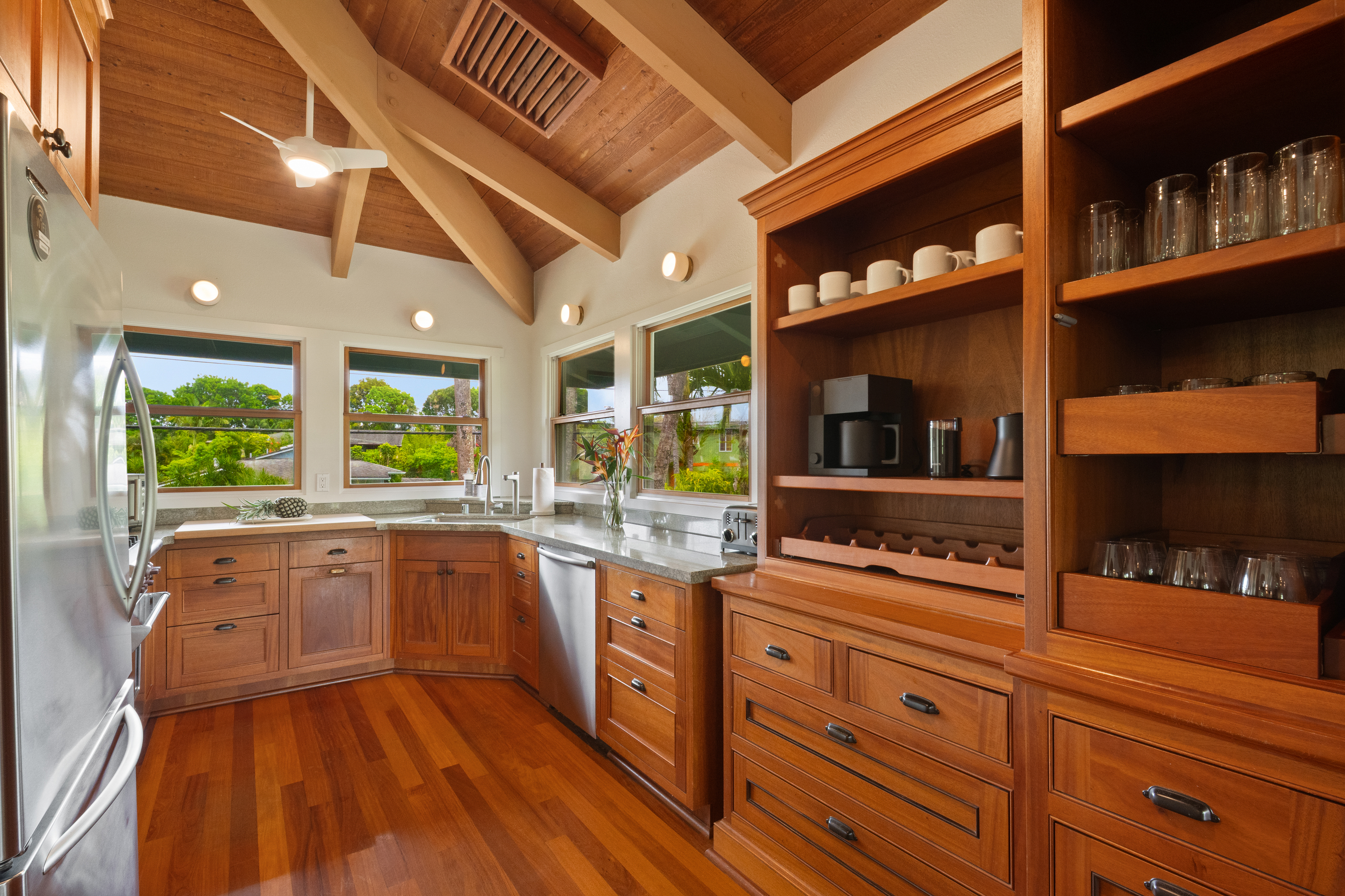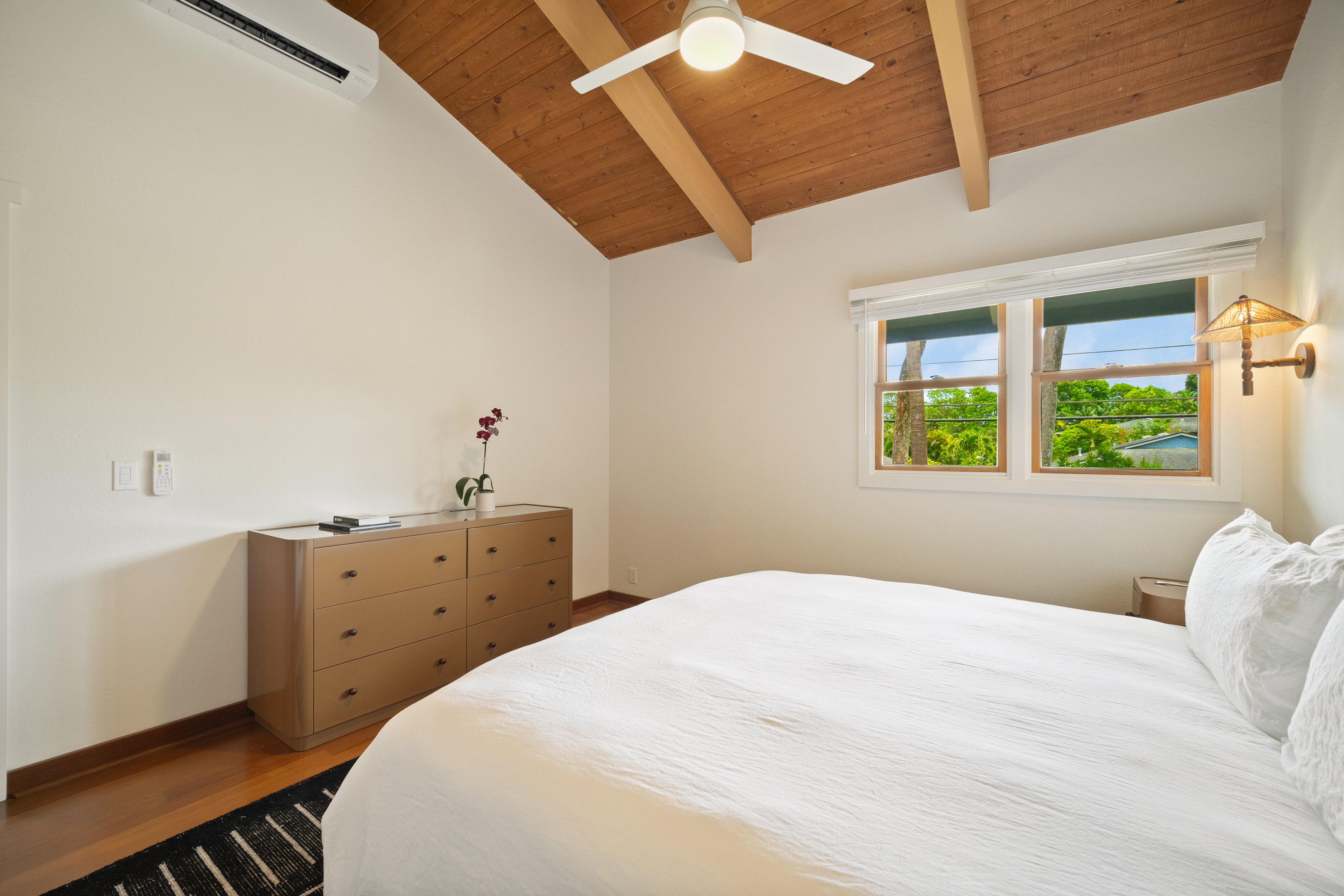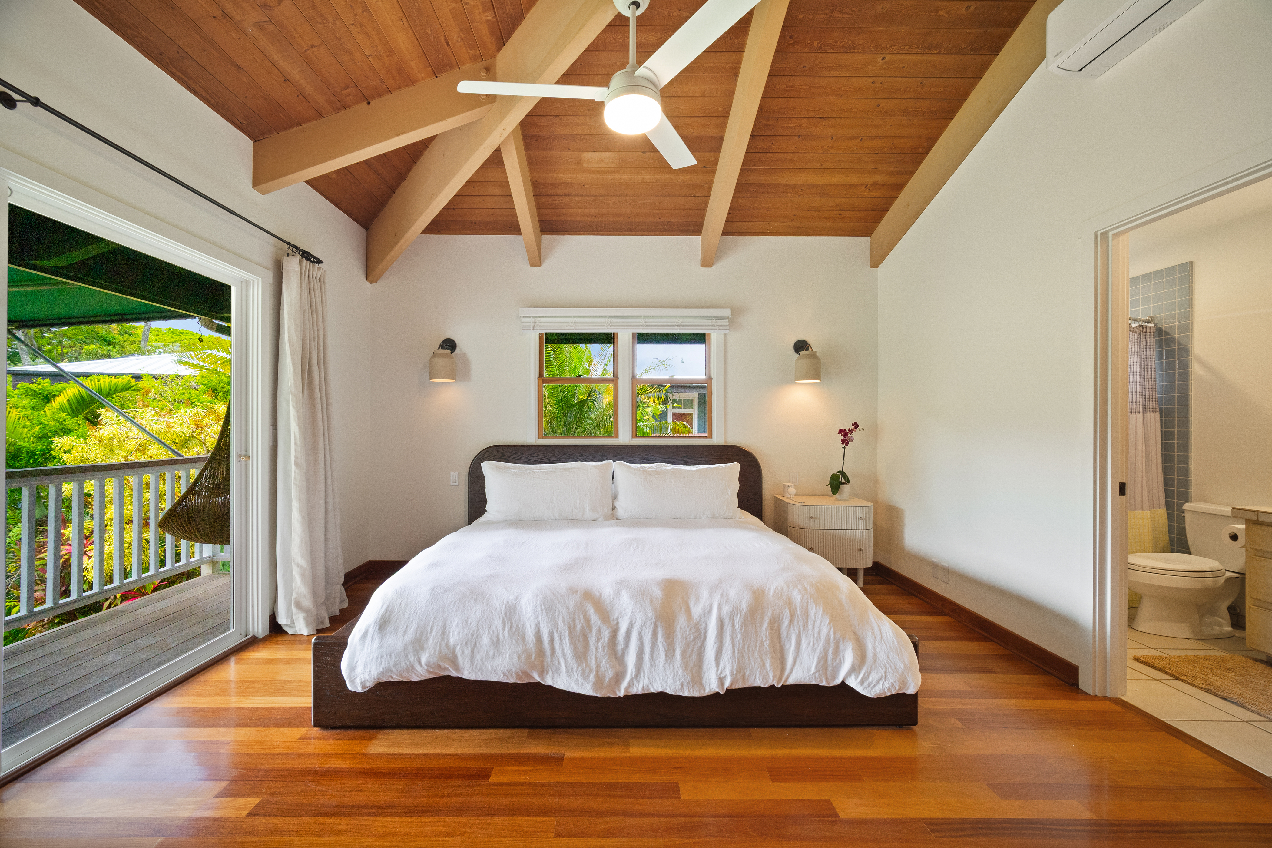 Designed for comfort, ease, and memorable gatherings, this beautifully upgraded Hanalei home features three air-conditioned bedrooms, two full bathrooms, a refreshing hot and cold outdoor shower, and a newly enhanced bonus room perfect for families and groups.