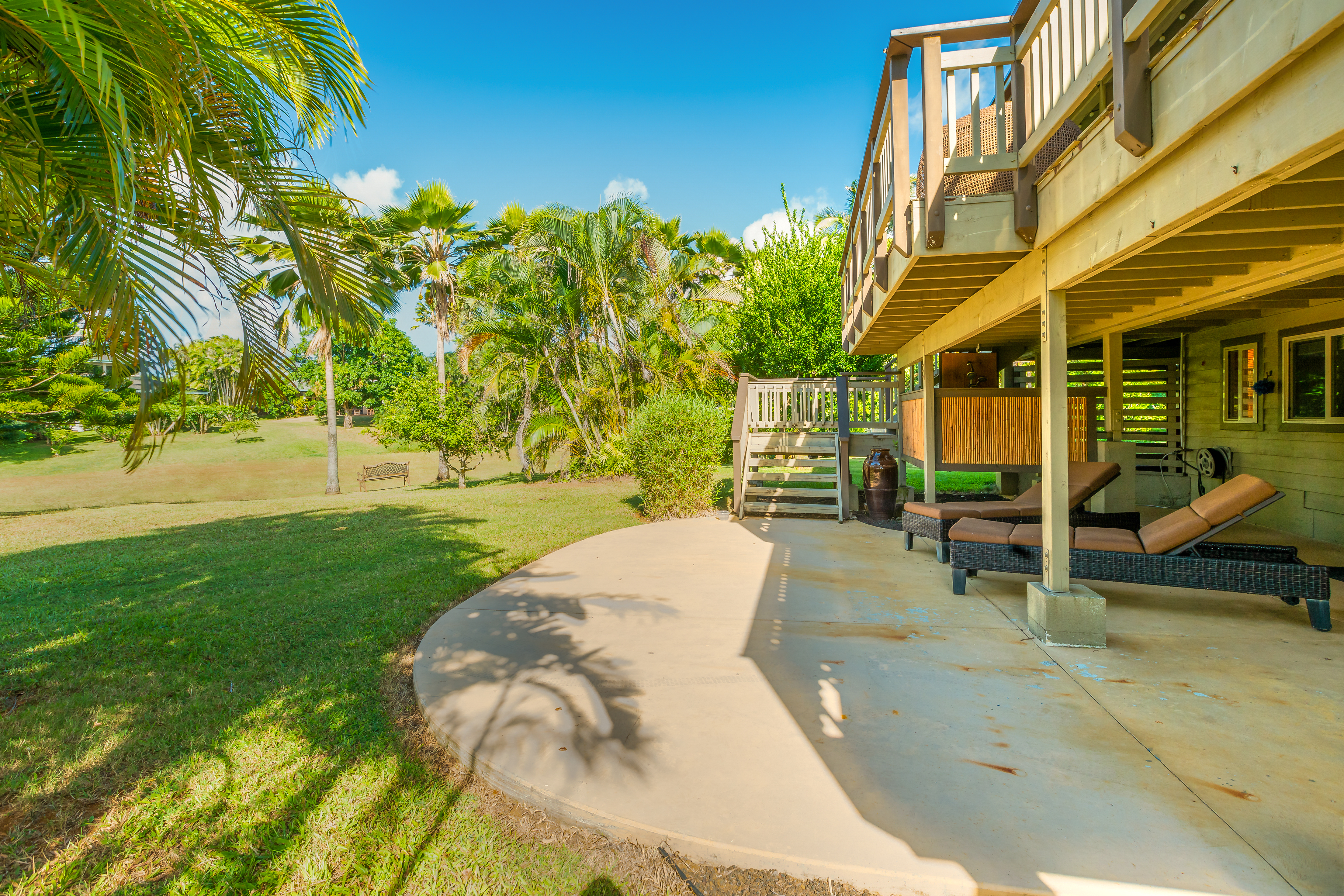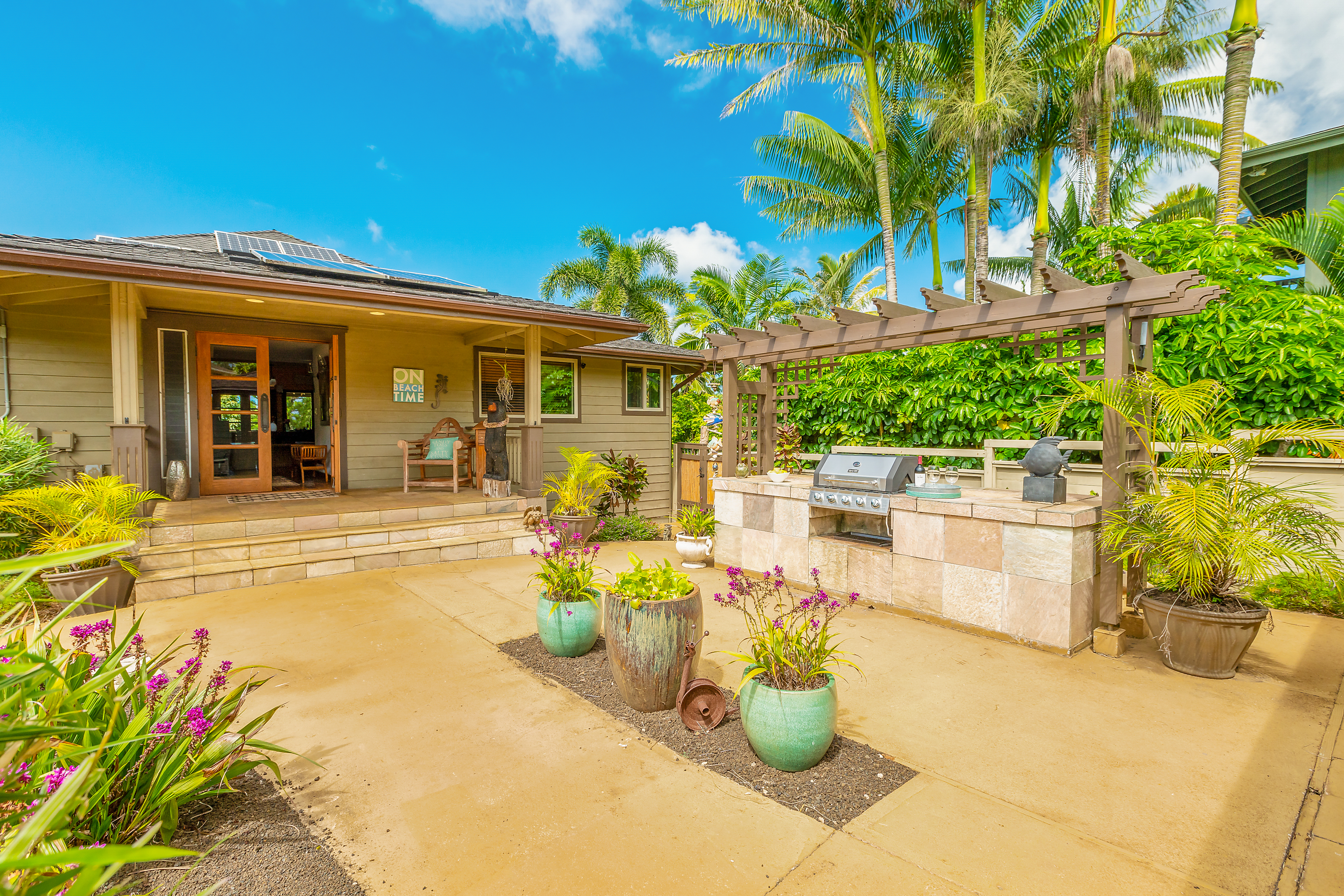 Enjoy the best of Kauai’s natural beauty with three distinct outdoor living areas designed for relaxation and entertainment. Whether you’re sipping morning coffee on the lanai, hosting a sunset barbecue, or celebrating a special occasion under the stars, every moment here feels magical. Ohana Kai offers gentle tradewinds, and a peaceful tropical ambiance.