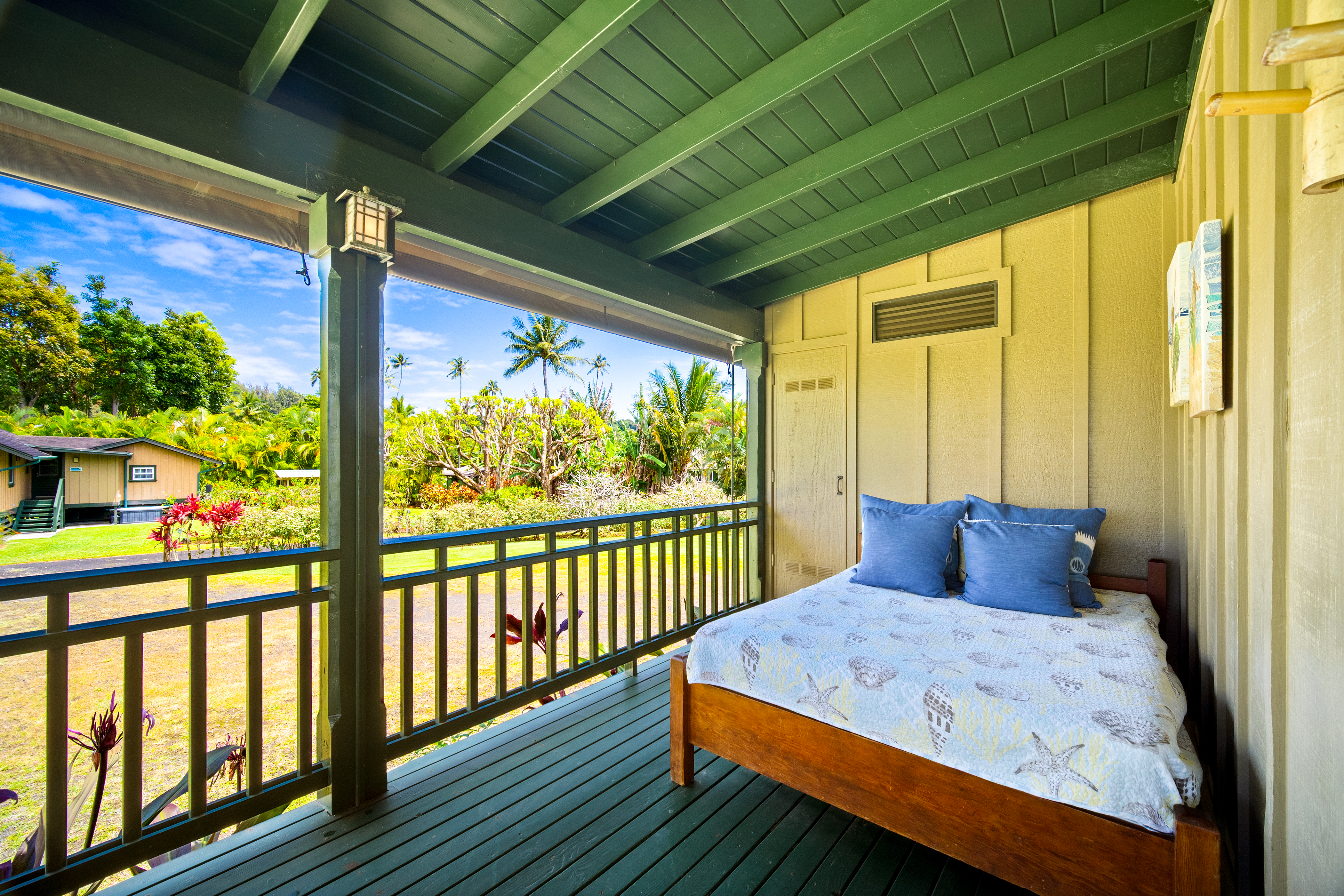 Step outside to experience the beauty of Hanalei’s natural surroundings. The cottage offers two covered lanais with sweeping mountain views, perfect for morning coffee or sunset cocktails. After a day exploring the North Shore, rinse off in the hot outdoor shower, then unwind under the palms as the sounds of nature fill the air.